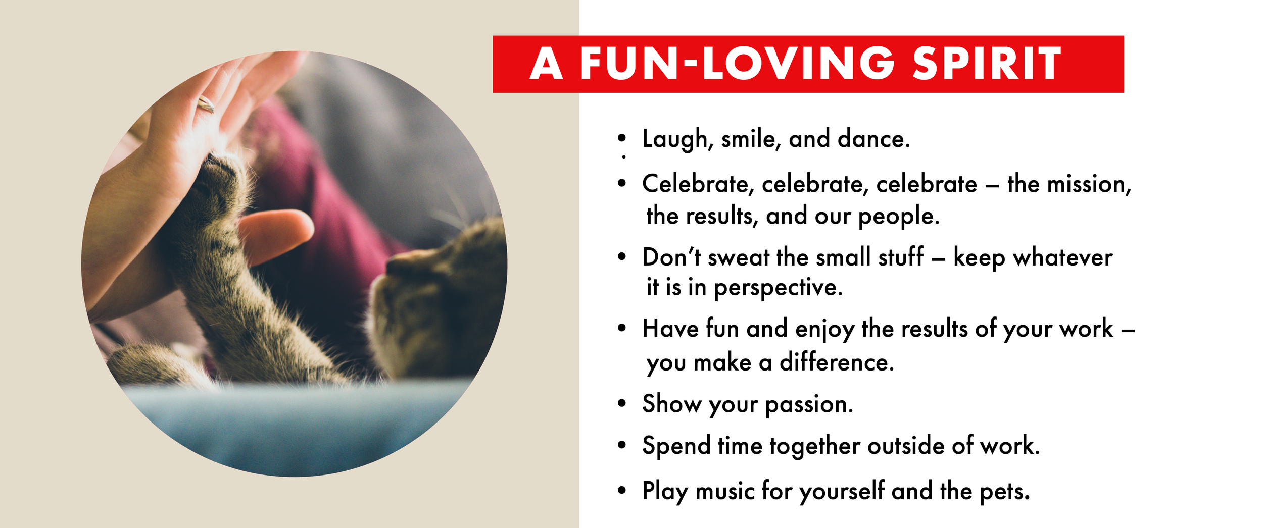 At the Greater Birmingham Humane Society (GBHS), we care about our employees. Our comprehensive benefits are designed to enhance all aspects of our employees’ lives. From creating a supportive working environment, to allowing for time away from work to recharge, the GBHS benefits package makes us an active supporter of our employee’s health, wellness, and quality of life.